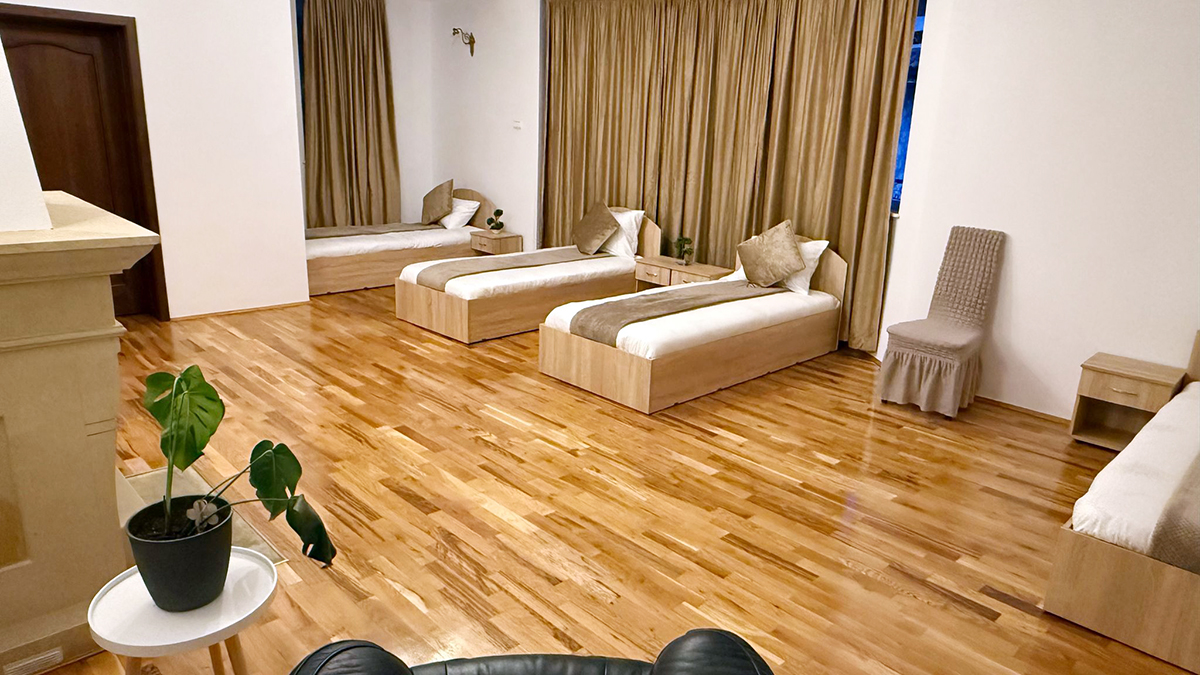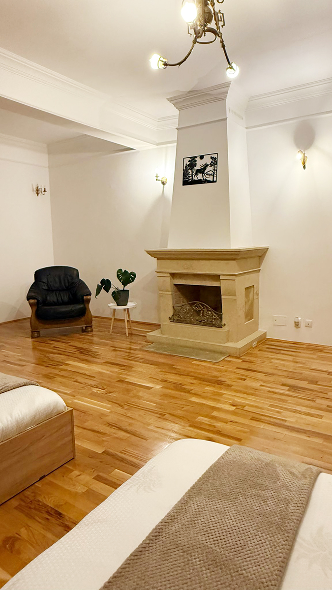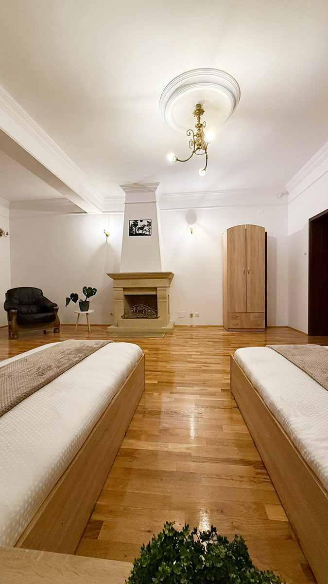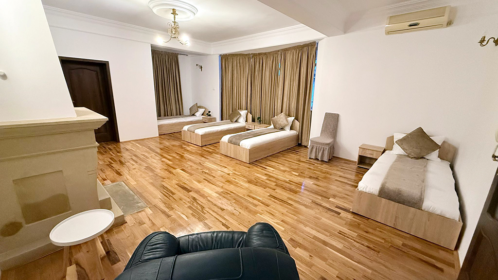 Dormitorul este dotat cu mobilier nou, din lemn, dulap pentru haine și lucruri personale, TV. Locația este dotată cu aere condiționate și centrală de încălzire proprie.