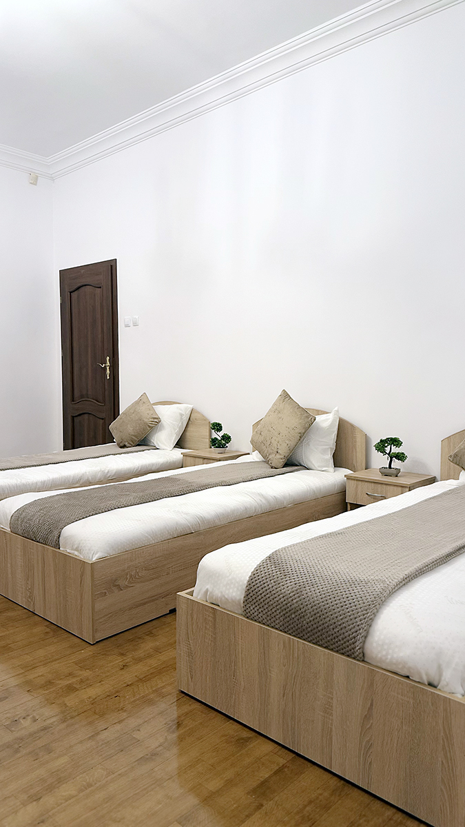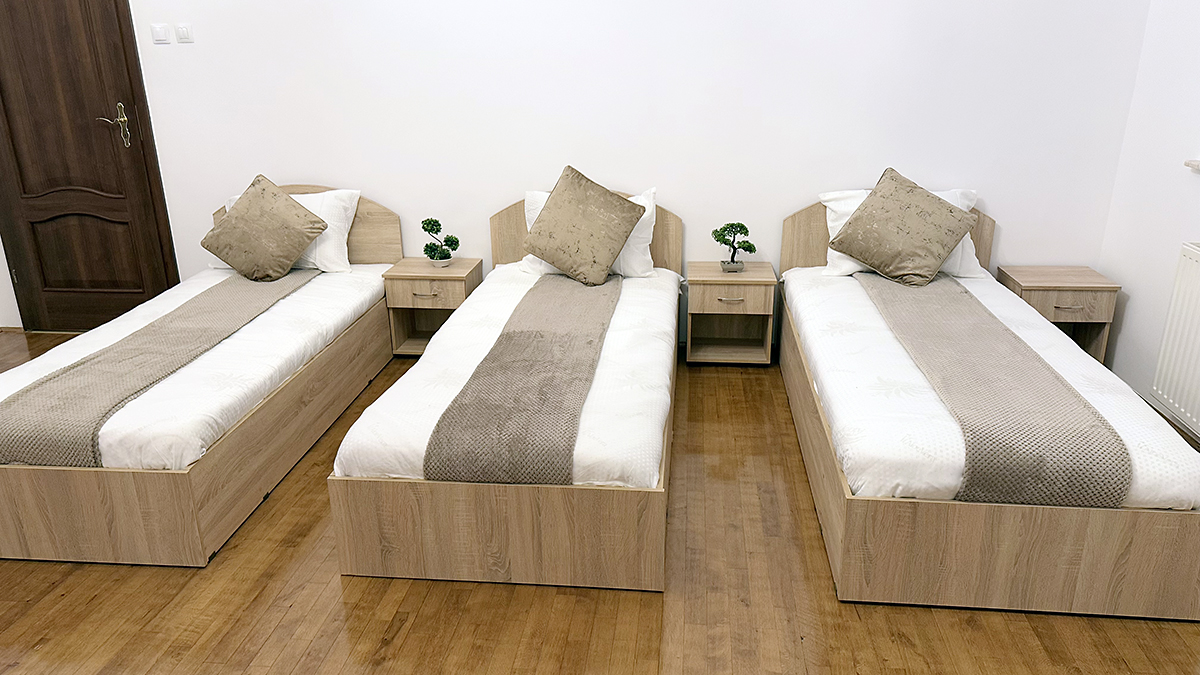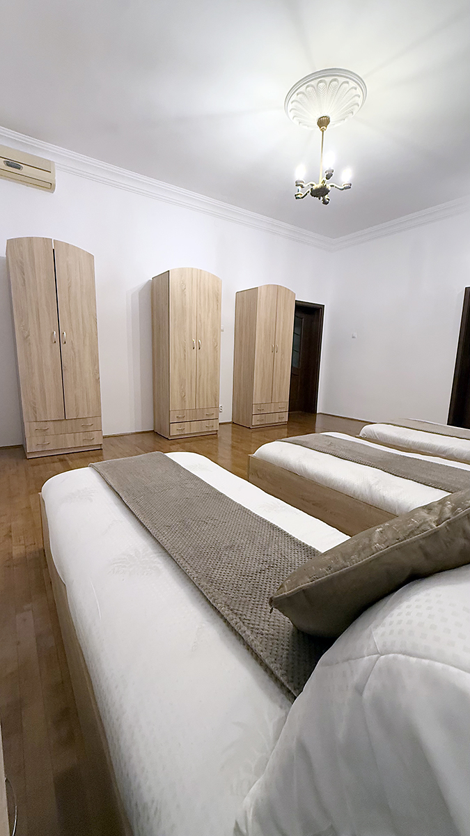 Dormitorul este dotat cu mobilier nou, din lemn, dulap pentru haine și lucruri personale, TV. Locația este dotată cu aere condiționate și centrală de încălzire proprie.